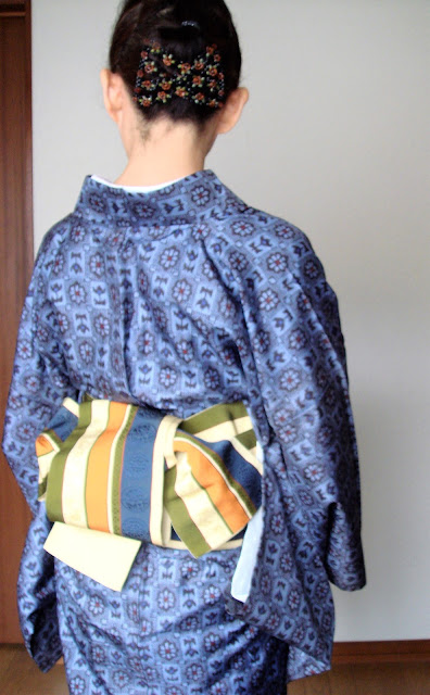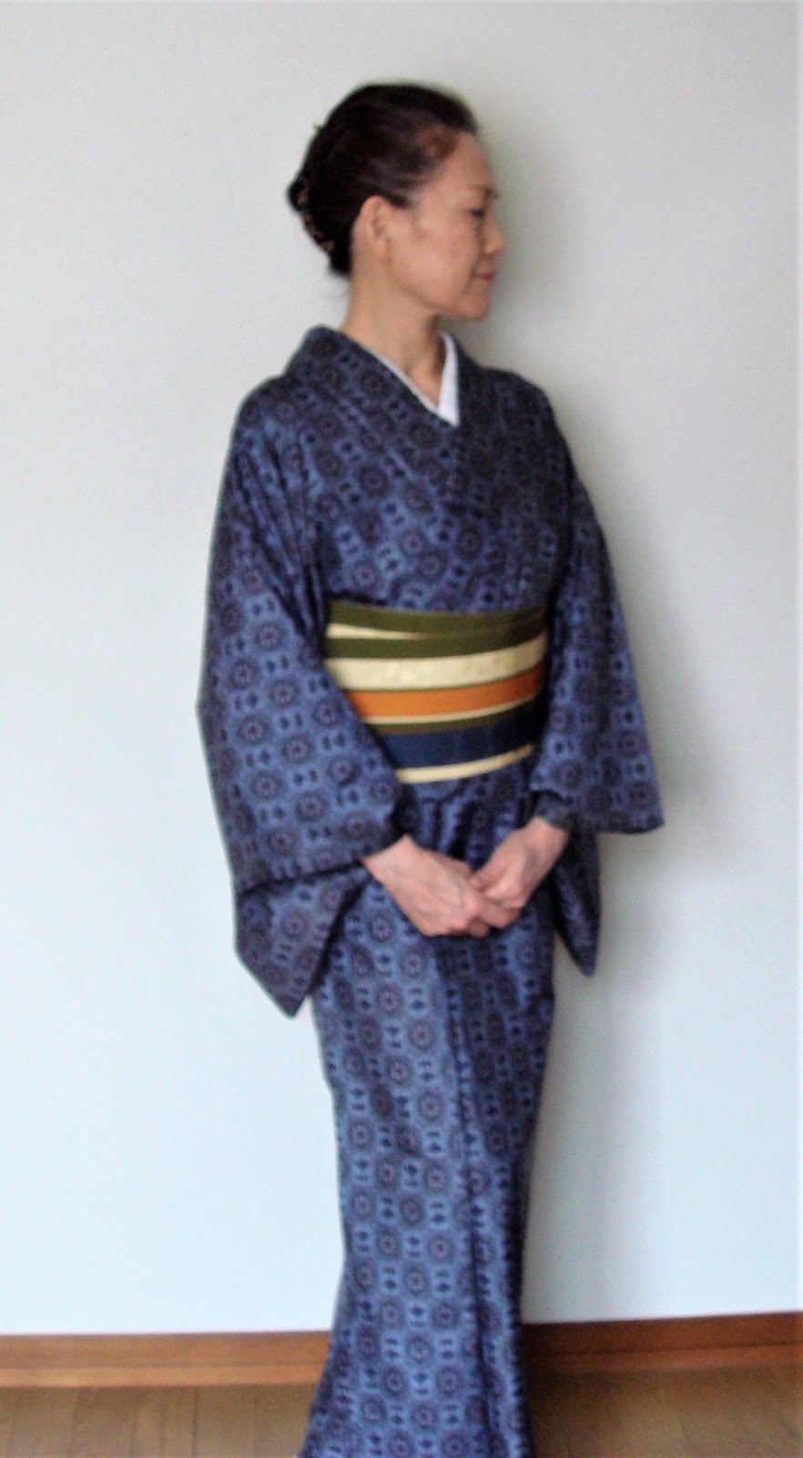 逆に、絹物でもこの大島系ならセルフメンテも手軽。単衣で裏もないから洗うのも乾かすのも手軽に出来ます。そんなわけで今日のこの着物です。