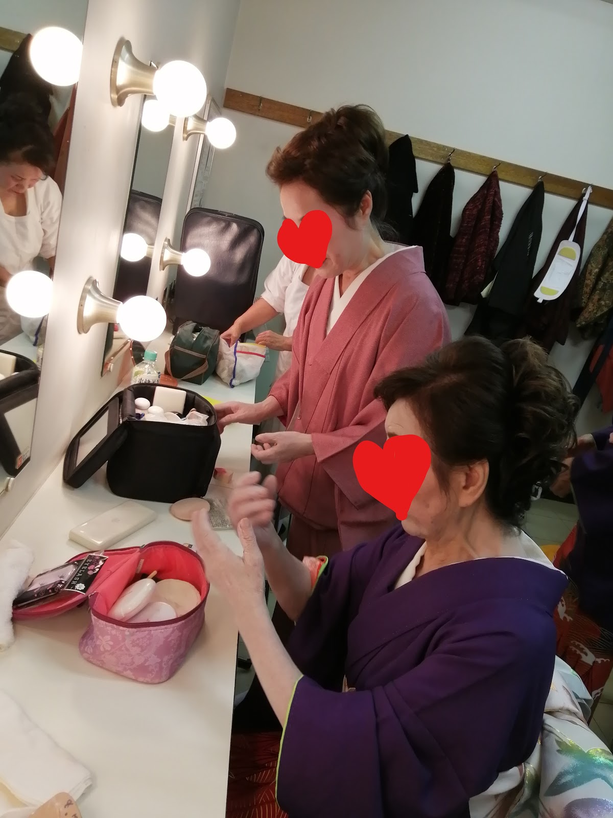 同じサークルの会員さん(踊りの部には入っていない方)が、今回は帯担当でお手伝いに入ってくれて全員の帯を締めて下さいました。
